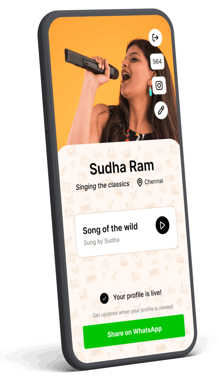 Add YouTube & Instagram links and the genres you enjoy. Your profile is your mini singing portfolio.